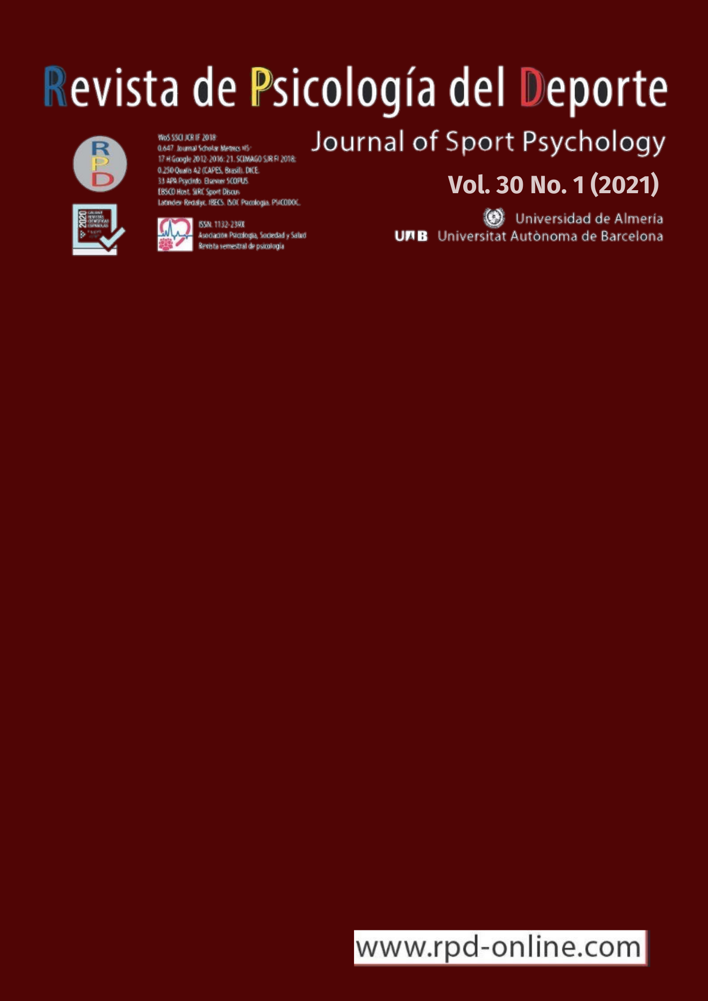 Vol. 29 No. 3 (2020)The Revista de Psicología del Deporte (‘Journal of Sport Psychology’) was founded in 1992, and since then its mission has been to publish original articles of a scientific nature that have followed rigorous methodologies and contribute to progress in the field of sports psychology.
